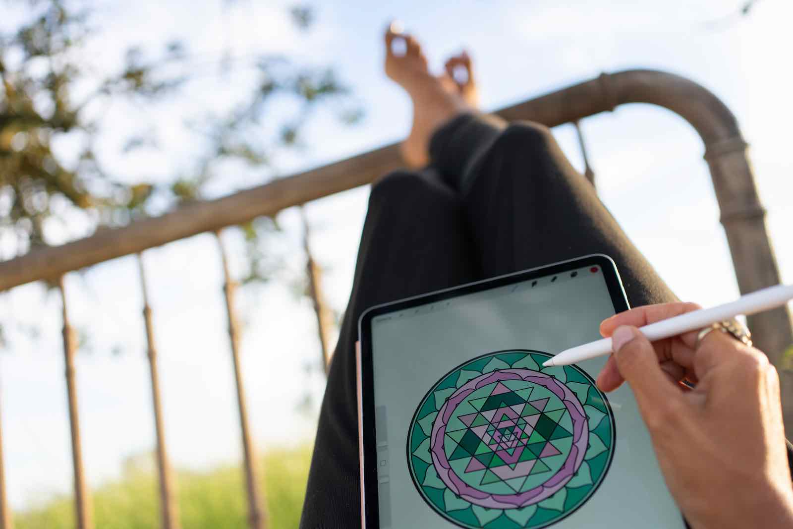 I’m so grateful for all the healing self-practices that keep my energy moving, that I’ve learnt over the years, Reiki, crystal healing, yoga, pranayama and meditation. I am a creative. I’ve painted and made things since I was a kid, so I always feel this need to create. I learned how to draw on the iPad. That gave me a little escape from the worry. Creating is a great tool to stay present and connected. For example one, day I went to look at all the different wild flowers and plants and felt the need to learn more about them. After I did that, I thought of collecting them to make smudge sticks. I’d wanted to do it for years and in this moment, I had the luxury to just sit around wild flowers and make things simply for the joy of it. I’ve drawn some sacred geometry, I drew and coloured yantras to do chakra meditation and healing, I’ve made collages… I’ve loved taking the time to do things for myself I wouldn’t normally do.