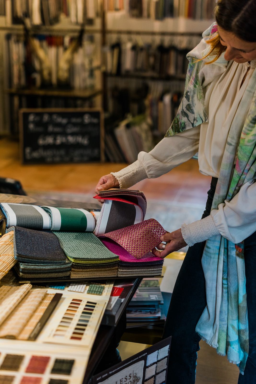 In the post-pandemic world, homes have become more important than ever and D Shop is riding a new wave of success, with a steady stream of fascinating projects flowing in from long-standing customers and new clients alike. From made-to-measure curtains for windows with wonky measurements (as found in typically Ibicencan homes) and custom cushions for outdoor settings, to bespoke cushions and unique upholstery as well as a huge selection of carpets, there’s a design solution for everything within the walls of D Shop. With the island’s largest array of indoor and outdoor fabric samples – there are over 80,000 samples personally curated by Kate – to peruse, ranging from organic, linen, velvet, wool and cotton to fire-proof, waterproof, stain-resistant and more, you name it, they’ve got it. D Shop is the very epitome of living in a material world.