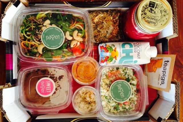 Today’s detox box looks even more exciting – a Thai green salad (totally amazing with yummy chunks of pineapple, curried cashews and avocado!), coconut water, a deep red juice, and a noodle box with a raw pad Thai for dinner, which included strips of delicious raw coconut. Again, I found I couldn’t finish it all!